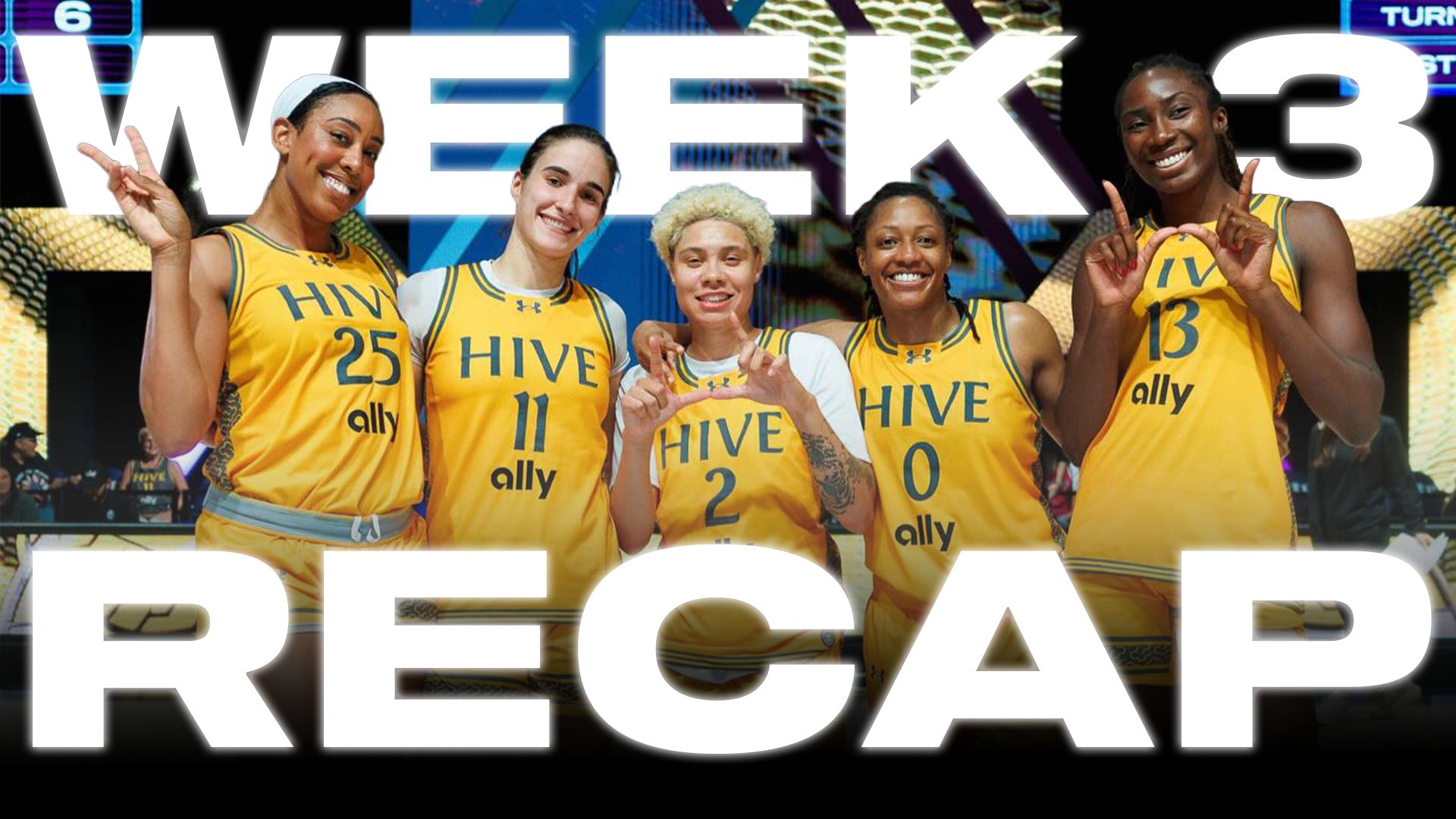 Week 3 was a full sprint with momentum swings and benches changing games. Friday opened with Mist riding hot shooting and Allisha Gray’s 28 points in an 89-71 win over Rose. Later, Phantom handled Vinyl 78-69 behind their inside-out engine, with Aliyah Boston’s 21 and Kelsey Plum’s 18 points setting the tone.